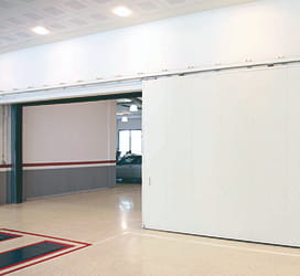 Allo stesso modo, per garantire il flusso costante di carrelli elevatori senza compromettere lo spazio libero è stata installata una porta rapida all'esterno del capannone consentendo di mantenere il passaggio desiderato senza ostruzioni.