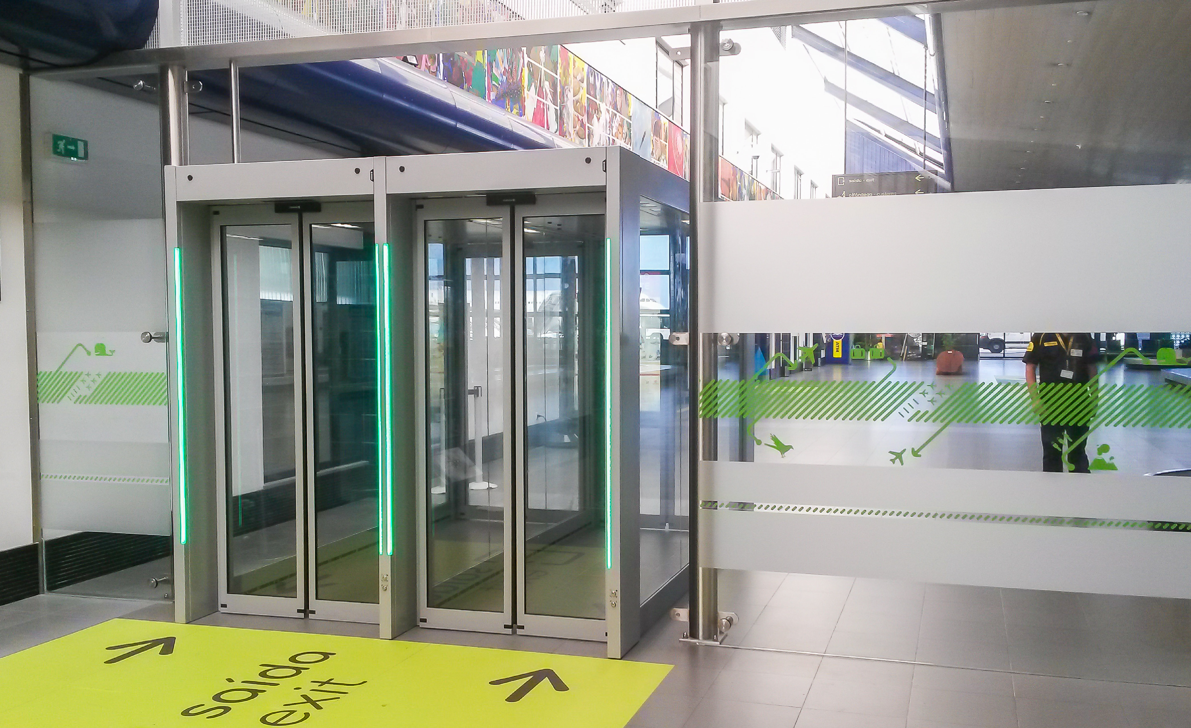 - Conta com alarmes que se ativam caso alguém tente utilizá-las em sentido contrário e um dispositivo de fecho e bloqueio automático que apenas é desbloqueado quando o corredor fica completamente vazio.