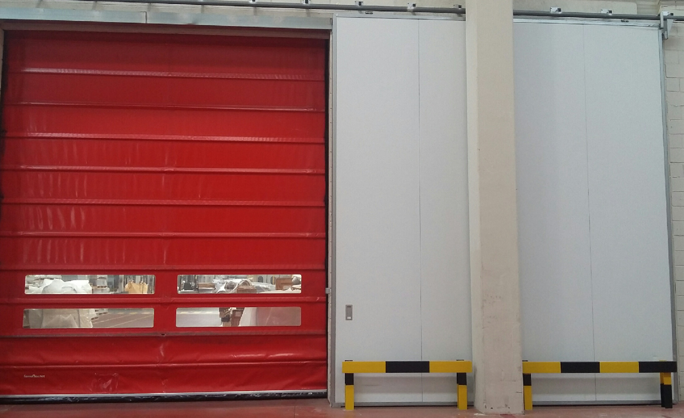 As portas de correr industriais corta-fogo foram desenhadas para setorizar zonas em caso de incêndio e impedir a propagação do fogo fora das mesmas. Este modelo de porta à prova de fogo pode ser combinado com portas rápidas para maior funcionalidade. Disponíveis em 1 folha ou em várias folhas, sendo assim de tipo telescópico. Contam com a homologação EI/60, EI/90, EI/120, e cumprem a norma UNE EN1634-1 de resistência ao fogo. Possibilidade de introduzir um portão de passagem de 800x2060