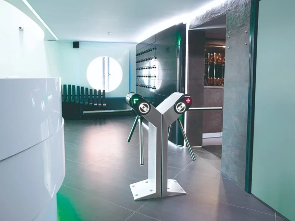 Em muitos ginásios é habitual encontrar sistemas de controlo de acesso, como corredores com painéis de batente, corredores com painéis ocultáveis, cancelas ou tornos motorizados de batente, que garantem o acesso aos utilizadores e para o pessoal do centro desportivo. Através de um cartão de proximidade ou pulseira RFID, que os utilizadores devem aproximar destes dispositivos para poder aceder comodamente e sem necessidade de contacto.