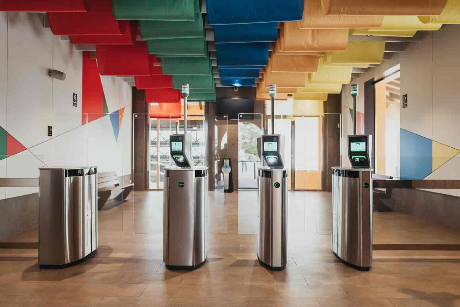 - Corredores com painéis de batente e corredores com painéis ocultáveis, que ajudam no registo de acessos e leitura de bilhetes por meio de código QR ou cartão. É possível integrar nos mesmos a tecnologia de controlo de afluência, que ajuda a saber em tempo real quantas pessoas estão num espaço concreto.