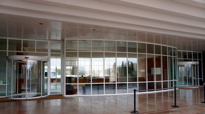Num dos acessos ao CCB, a Manusa foi encarregada de substituir duas portas giratórias por duas portas duplas curvas.